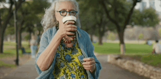The Cinnamon Crumble Oatmilk Frappuccino® sends Sarah into a spin.
